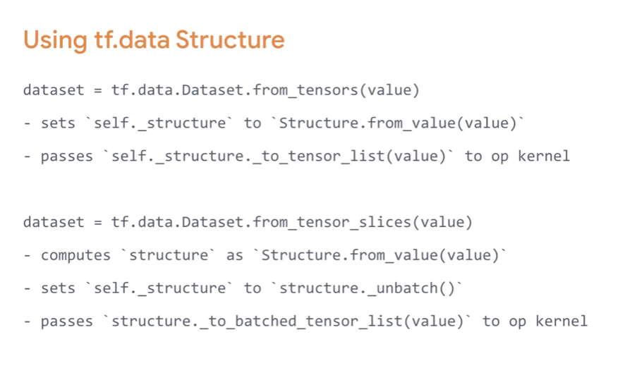 텐서 타입이 아닌 타입을 다루기 위해서는 다음 이미지에 나오는 코드로 변환하여 tf.data를 사용할 수 있게 된다.