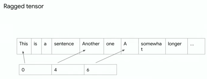 텐서플로우는 서로 다른 길이의 데이터를 다루기 위해 ragged tensor 형태를 사용합니다.